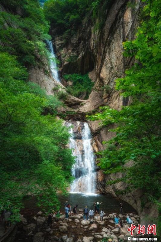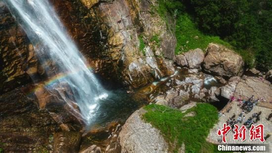 近日,陜西西安氣溫持續(xù)飆升。位于秦嶺腹地的陜西太平國家森林公園內(nèi)綠樹成蔭、涼意十足,“彩虹飛瀑”等獨屬夏季的自然景觀,吸引了不少游客前來避暑消夏,享受秦嶺深處的夏日清涼。
