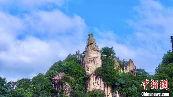 藍(lán)天白云下,秦嶺綠意盎然。西安翠華山景區(qū) 供圖