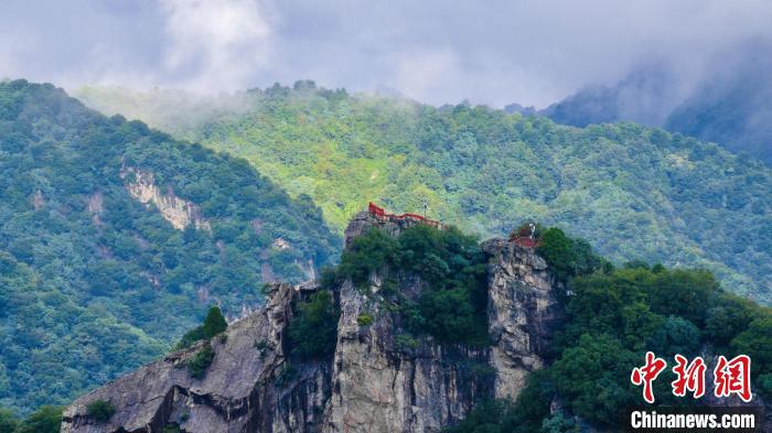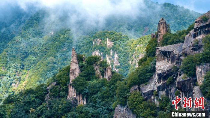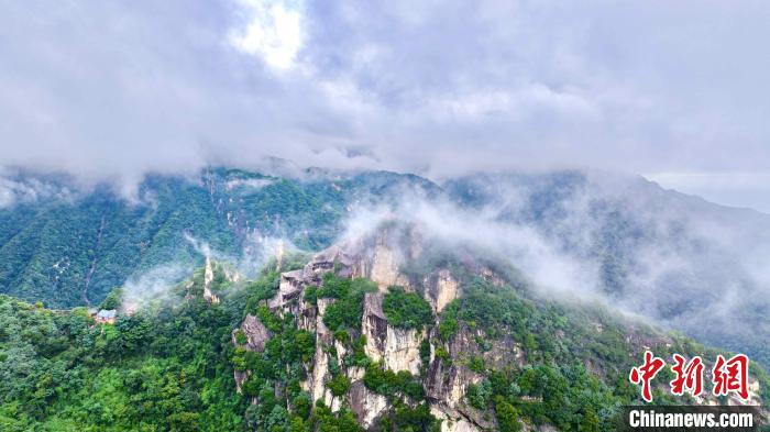 蒼翠的山脈霧氣氤氳,時隱時現(xiàn)。西安翠華山景區(qū) 供圖