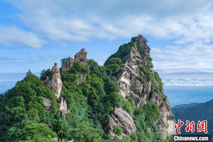 8月21日,陜西西安雨后放晴,秦嶺終南山世界地質(zhì)公園翠華山景區(qū)出現(xiàn)云海景觀。藍(lán)天白云之下,蒼翠的山脈霧氣氤氳,時隱時現(xiàn),如夢如幻。