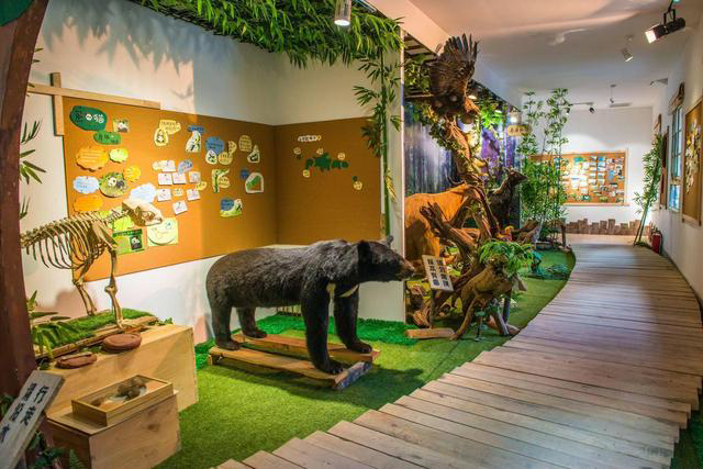 在秦嶺自然學(xué)校里,游客在公園講解員的組織下,參觀秦嶺野生動(dòng)植物標(biāo)本、制作樹葉畫、舉行大自然書畫創(chuàng)意比賽等。