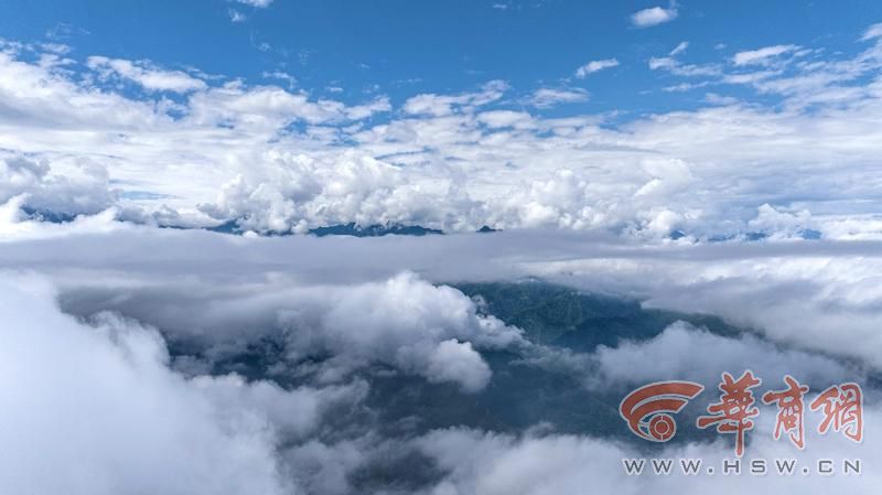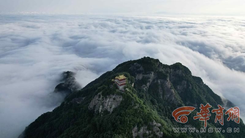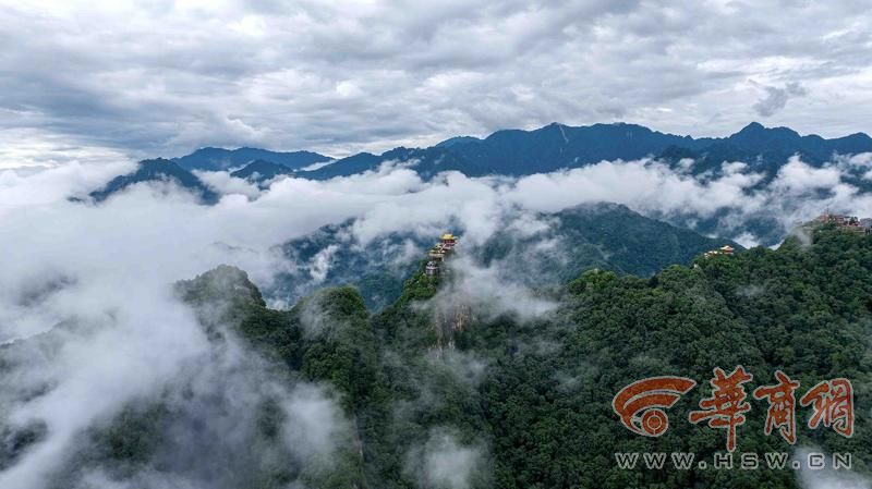 立秋后的秦嶺南五臺云海景觀美不勝收,8月8日上午,山間水汽凝結(jié),形成了云霧繚繞的景象。這些云霧在山間飄蕩,時聚時散,如同仙境一般。藍天、白云、綠樹、紅葉,以及遠處的山巒,共同構(gòu)成了一幅和諧的畫面。被譽為“秦嶺地標(biāo)”的靈應(yīng)臺,是觀賞云海的絕佳地點。登上靈應(yīng)臺,眼前建筑隱沒在云霧中,縹緲間時隱時現(xiàn),更顯獨特風(fēng)韻。遠眺連綿不絕的終南云海,山峰或深或淺地露出在霧氣里,宛如仙境。