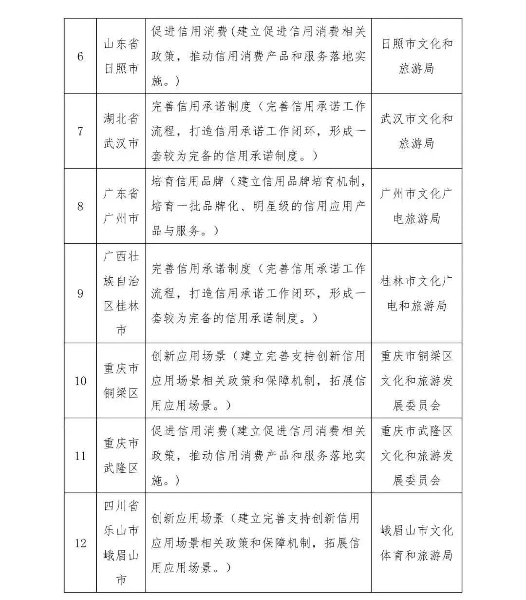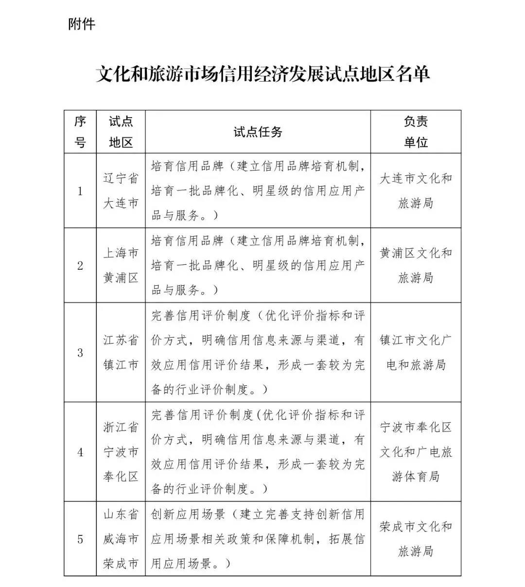 近日,文化和旅游部辦公廳發(fā)布關(guān)于公布文化和旅游市場信用經(jīng)濟(jì)發(fā)展試點(diǎn)地區(qū)名單的通知,全文如下: